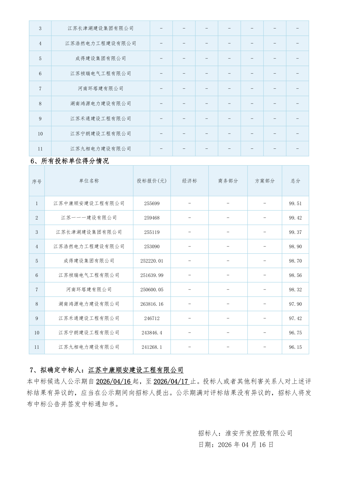 淮安開發(fā)控股有限公司歐美工業(yè)園12#廠房10KV供電增容工程評(píng)標(biāo)結(jié)果公示